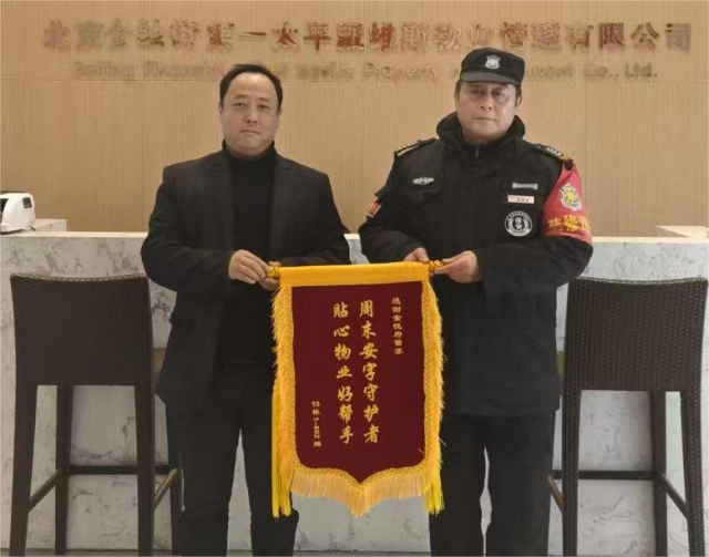 武汉恒昌盛保安服务有限公司义警刘勇,11月在东合中心项目工作中拾金不昧物归原主,获失主赠予锦旗致谢