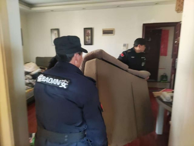 武汉恒昌盛保安服务有限公司驻星悦城保安义警刘世海、邢刚,11月22日热心帮助老人搬运大件家具,事后获赠锦旗