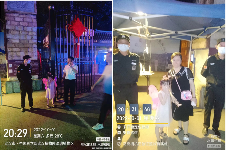 10月1日晚,武汉富宁保安服务有限公司驻武汉植物园保安员帮助与家人走失的小女孩寻找家人,受到群众赞扬。