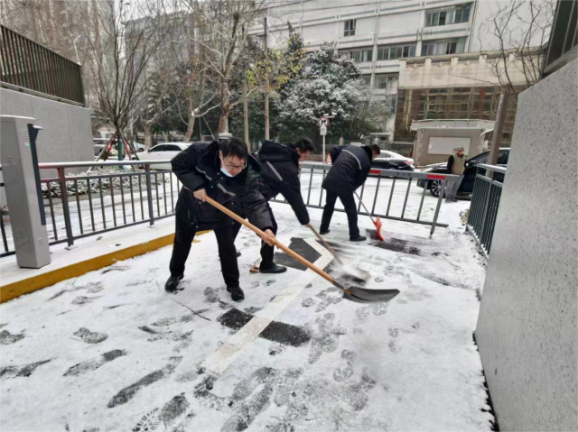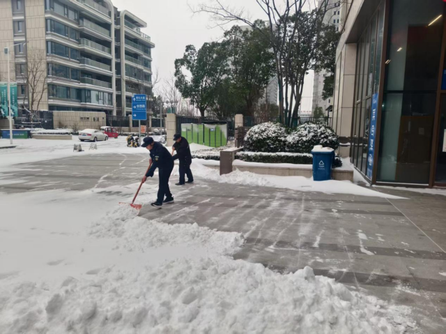 清晨7时许,各项目点队员全员集结,公司管理层通过线上会议紧急部署任务,要求各项目点以保障客户单位人员安全出行为首要任务,确保“雪不停、人不歇”。队员们手持铁锹、扫帚等工具,奔赴小区、园区主干道及出入口,全面开展清雪工作。