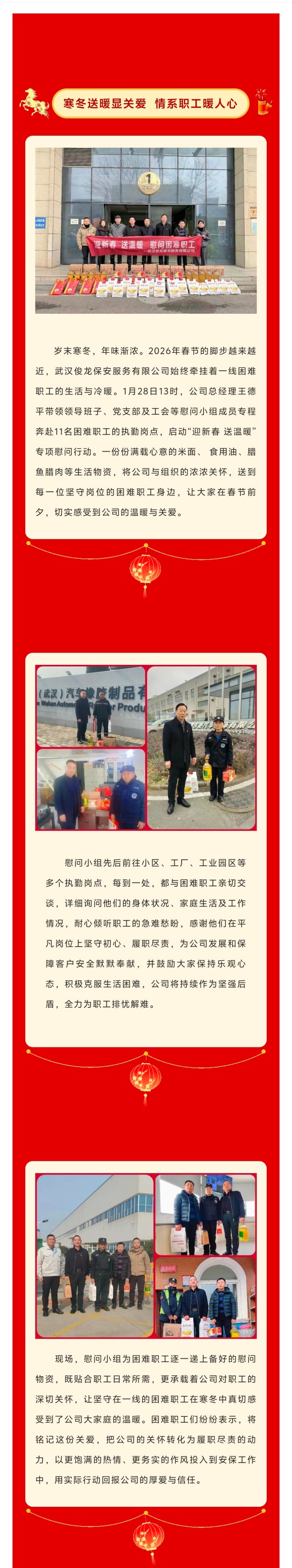 【武汉俊龙】武汉俊龙保安服务有限公司情系职工 寒冬送暖尽显人文关怀