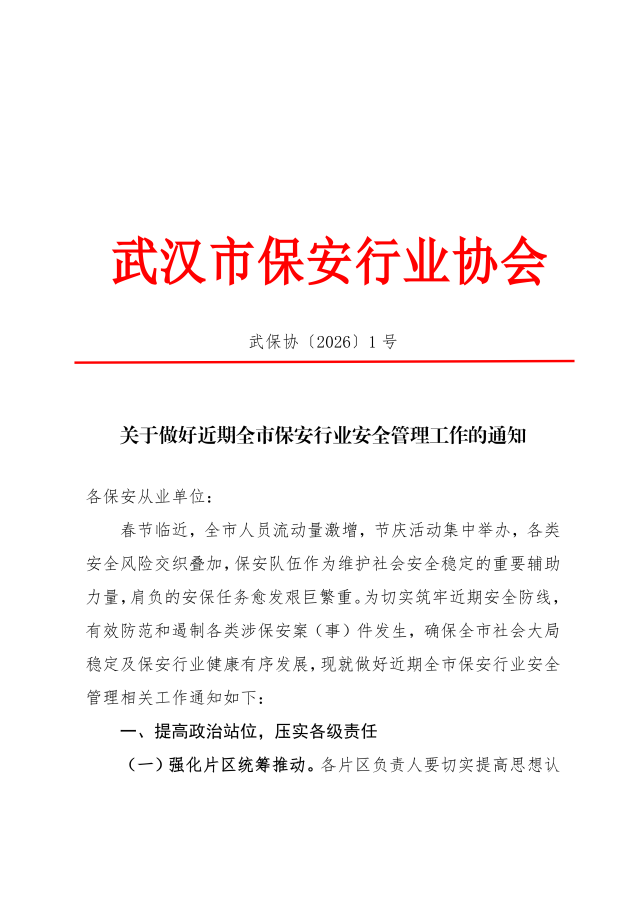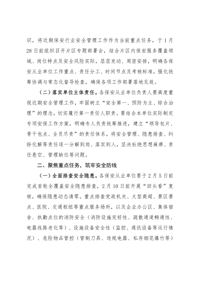 关于做好近期全市保安行业安全管理工作的通知