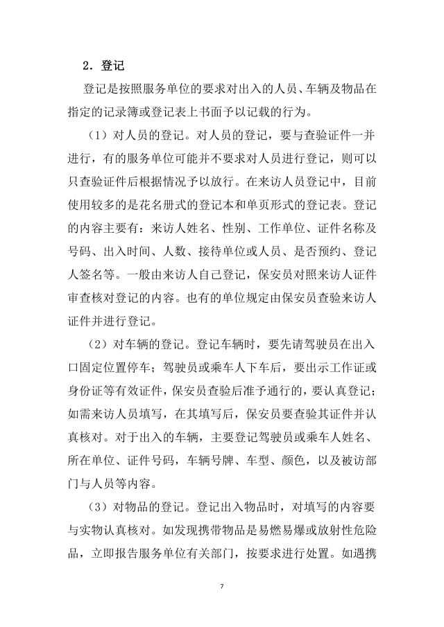【学习资料】保安出入口守卫技能与要求