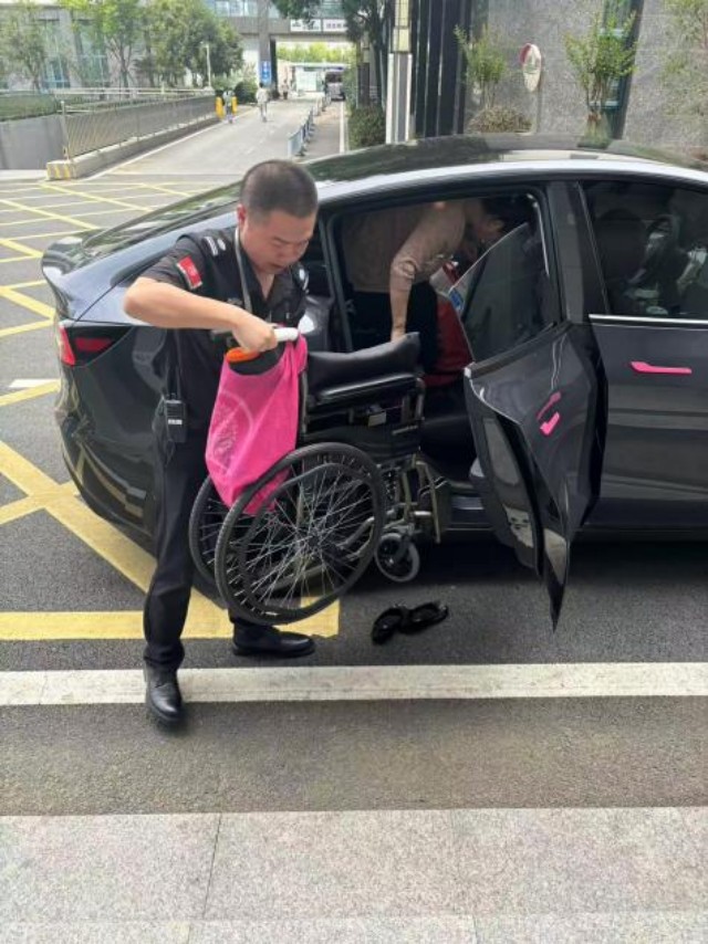 6月12日 武汉维维安保安驻武汉市中医院汉阳院区特勤搀扶行动不便的病人下车并拿轮椅