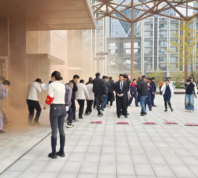 为响应2025年全国消防宣传月“全民消防、生命至上——安全用火用电”主题号召,切实提升人员密集场所应急处置能力,11月10日,湖北省文旅集团光谷总部中心联合湖北青城剑威保安服务有限公司,成功举办消防应急综合演练,现场近百名员工及安保人员参与此次实战实训。
