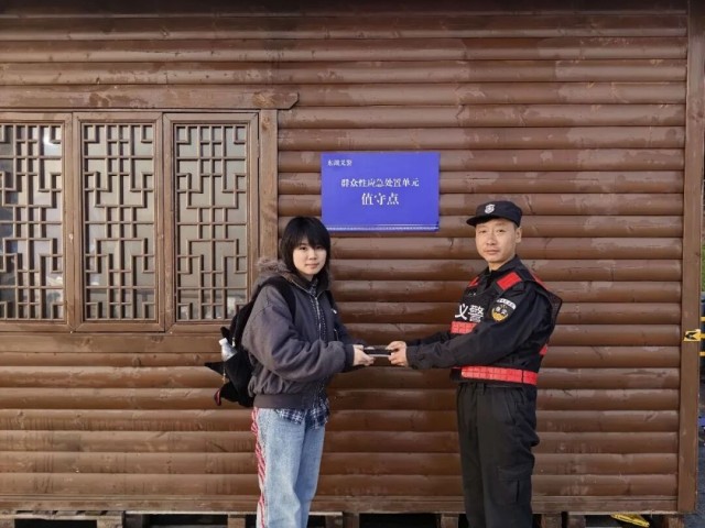 此次范昌、许顺华二人的暖心之举,既彰显了义警队伍的责任与担当,也为冬日的凌波门增添了一份温情。“东湖义警”队伍始终坚守岗位,以细致巡逻和热情服务,守护游客的出行安全与财产安全,以平凡善举传递社会正能量。青城剑威“东湖义警”绿道区域相关负责人表示,接下来,队伍将继续秉持初心,坚守岗位,以更饱满的热情、更扎实的行动守护绿道平安、传递文明新风,让温暖善行在东湖之畔不断延续。