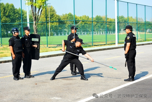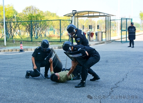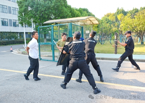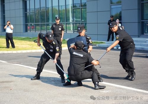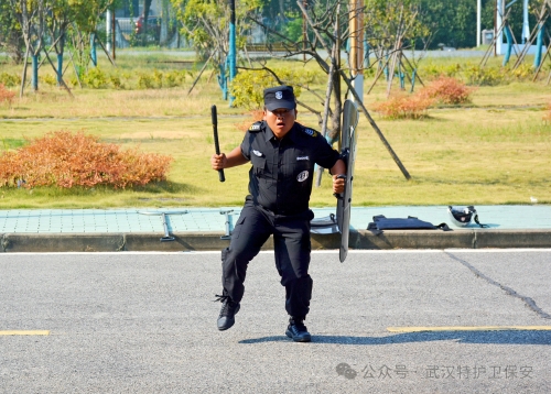 进入警棍盾牌操环节,表演队员手持警棍与盾牌,动作流畅协调,攻防转换间尽显专业风范。他时而列阵防守,固若金汤;时而迅猛突击,势如破竹。这一表演不仅考验了队员们的体能与技能,更展示了在复杂多变的安全形势下,他们如何灵活运用装备,确保公司安全无虞。