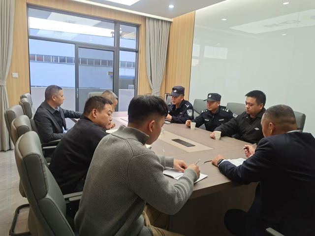 2024年10月24日下午,黄陂区公安分局环城派出所警长陈刚,警员耿威、毛伟一行受所长胡军的委托,前往我公司举行警保联动工作会议,公司领导杨国成、李永新、杨毅及部门负责人参加了会议。