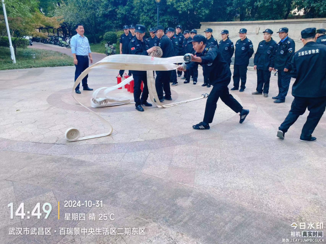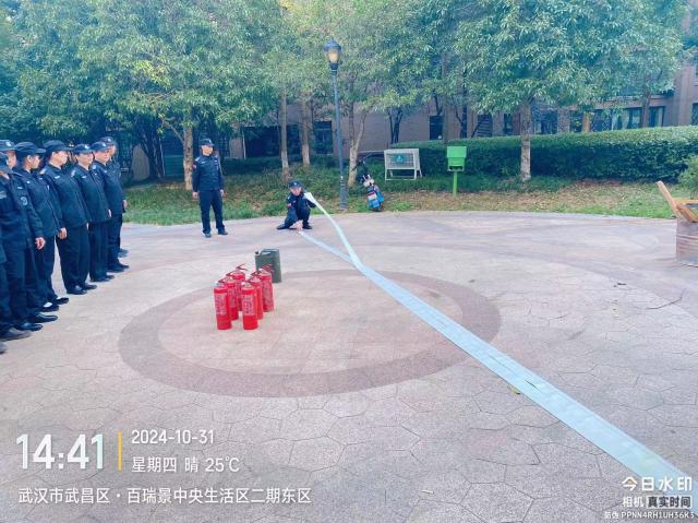 对消防器材进行实操,让全体保安员认识和了解各种消防器材的性能,熟悉各种消防器材的作用,确保队员们都能掌握消防器材的正确操作方法。