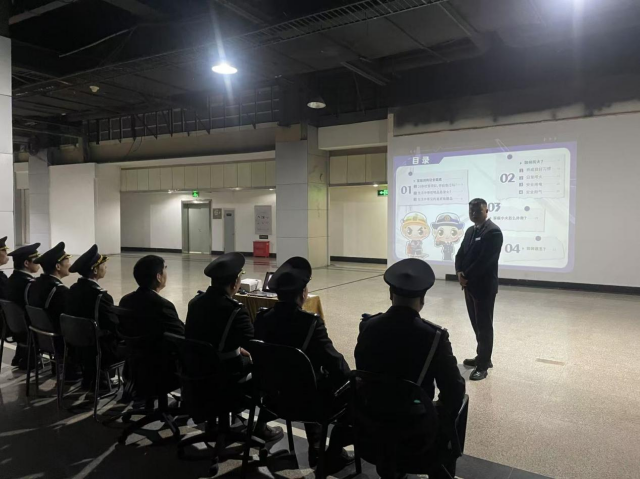开展消防常识培训,让全体保安员“四懂四会”:懂得火灾的危险性,懂得火灾的预防措施,懂得火灾的扑救方法,懂得火灾的逃生方法;做到会报警,会使用灭火器,会扑灭初期火灾,会逃生。