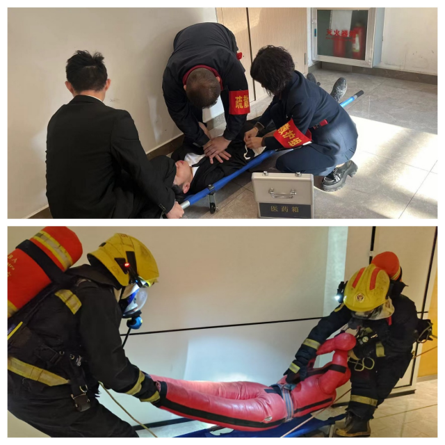 在紧张有序的演习过程中,救护组成员手持担架,模拟救助受伤人员,并迅速将他们安全转移出现场。整个演习过程紧张而有序,各小组成员表现出了高度的责任心和专业素养。