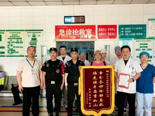 男子休克命悬一线 保安化身“急诊先锋”近日,武汉市协和江北蔡甸区人民医院安保部收到来自患者张先生的锦旗和感谢信。信中,对武汉市鹰盾保安服务有限公司保安队员及医院工作人员表达了感激之情,并对他们临危不乱、紧急施救的举措高度赞扬。