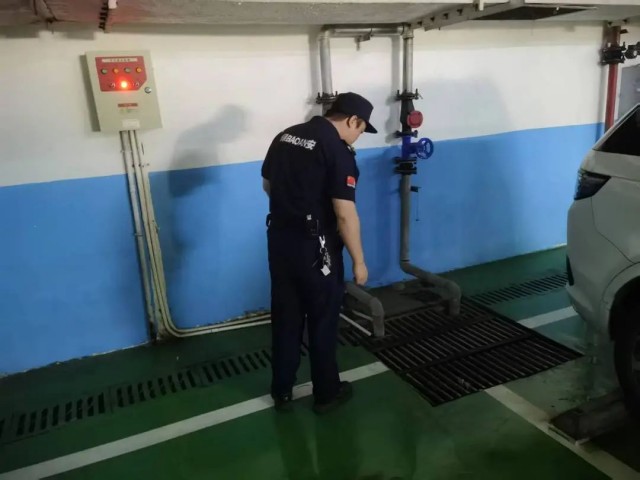暴雨中,保安队员们仔细检查地库积水,俯身查看排水系统。他们用专注守护家园,每一次排查都是对安全的承诺,为业主筑牢防线。在这场暴风雨中,保安队用实际行动诠释了责任与担当,成为金湖家园最坚实的守护者。
