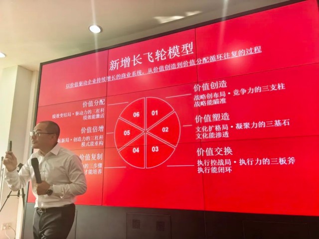 黄海波导师以“新增长飞轮模型”为框架,详细阐述了该模型以价值驱动企业持续增长,涵盖价值创造、塑造、交换、复制、倍增、分配闭环。讲解价值创造时,剖析战略创新布局、竞争力三支柱与战略能瞄准,明晰组织增长的方向锚点;价值塑造环节,从文化扩格局、凝聚力三基石及文化能渗透入手,阐述文化对团队协同、组织向心力的赋能,为增长凝聚内在动力;价值交换部分,聚焦执行控战局、执行力三板斧与执行能闭环,结合安保工作场景,传授任务拆解、跨部门协作技巧,保障战略落地。同时,通过案例分析,展现模型各环节如何联动,推动组织从价值创造到分配的循环增长。
