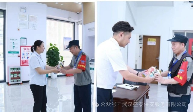 7月29日至7月31日,武汉盛泰保安服务有限公司党工会、保安部、运营部、金融部、人事部协同组织开展了2025年“夏日送清凉、基层我守护”慰问活动。公司党支部书记兼总经理罗灯亮,工会主席魏靖洁及各部负责人共同参与了本次活动,为向在高温“烤”验下毅然坚守岗位的一线员工,传递公司炽热的关怀,为他们送去沁人心脾的清凉!