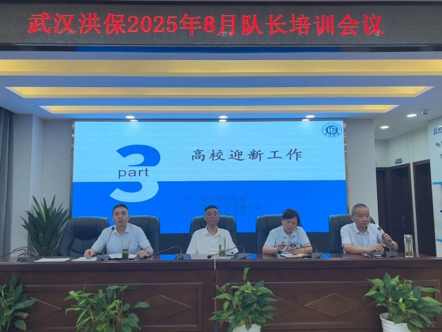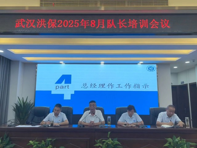 为进一步强化保安队伍管理,提升服务质量与安全保障能力,8月18日,武汉洪保保安服务有限公司组织召开队长培训会议。公司董事长、总经理、副总均出席会议并发表重要讲话,各项目队长齐聚一堂,围绕安全生产、保安员考试安排、高校迎新方案落地及三大核心议题展开深入学习与部署,为后续工作筑牢坚实基础。